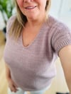 Enola V is a simple, feminine, easy-wearing tee based on the original minimal Enola design. This version is worked seamlessly from the top down with a feminine integrated V-neck.