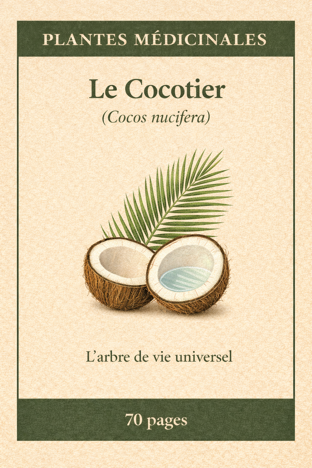 Ce guide approfondi de 70 pages rassemble les savoirs botaniques, nutritionnels, thérapeutiques, galéniques et culturels afin d’utiliser le cocotier de manière holistique, consciente et sécurisée.