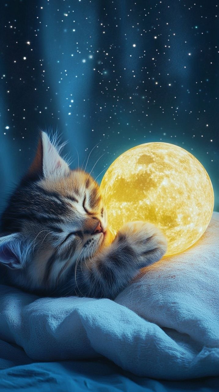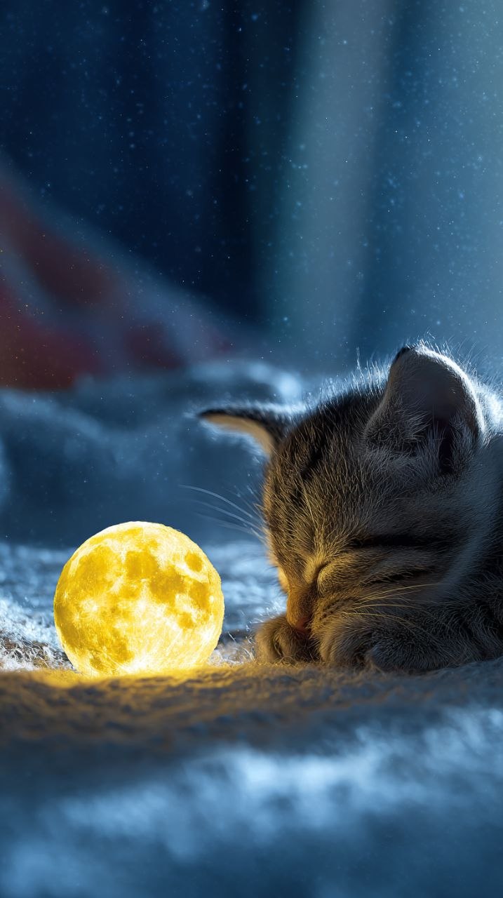 Kitten Hugging Glowing Moon — Bioluminescent Fantasy Cat Midjourney Prompt