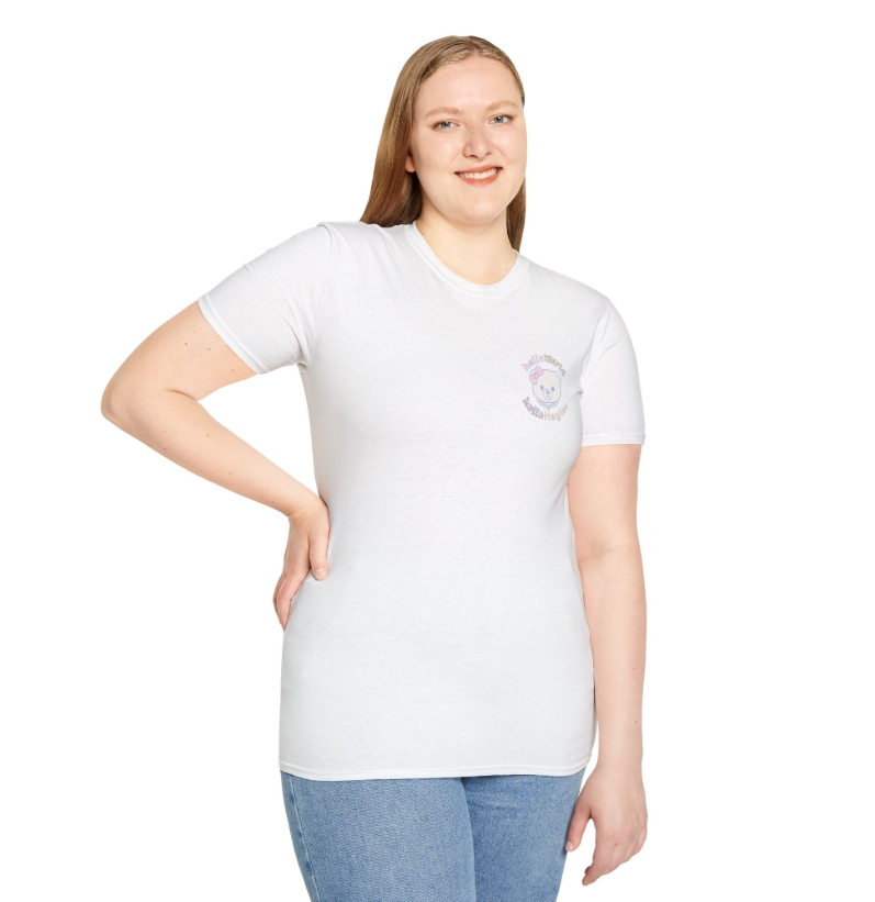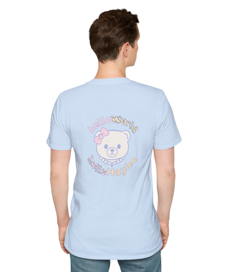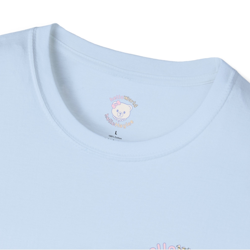 A lightweight, soft cotton tee with helloHaylee Logo. The slim crew neckline and classic fit keep the silhouette clean while the smooth ring-spun cotton feels breathable and lived-in — perfect for layering under a cardigan or wearing solo on a cool morning. Subtle sleeve and neck-print details add personality without shouting, so the shirt sits comfortably in everyday life: lazy café mornings, cozy study sessions, and casual meetups where you want something cute but calm. Ethically sourced cotton, tear-away label, and durable construction mean this tee stays soft and wearable wash after wash.