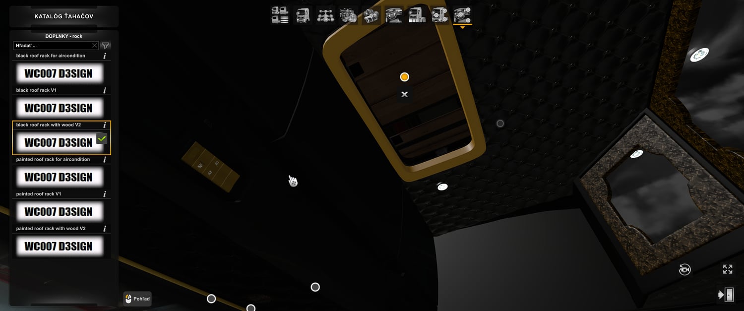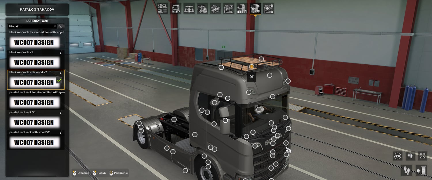 MOD description: Black and painted roof rack with wood decor V2 for all Scania nextgen cabs working only with scania no spoiler mod from this site, dont work alone.