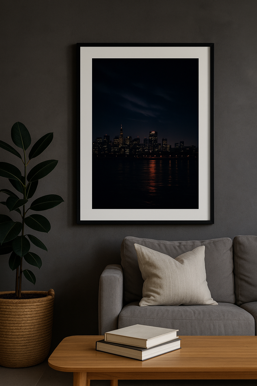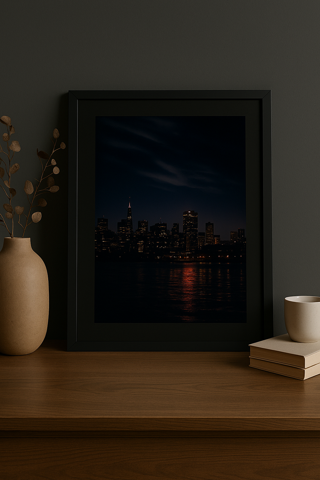 Transform your walls with this dramatic moody city skyline print.