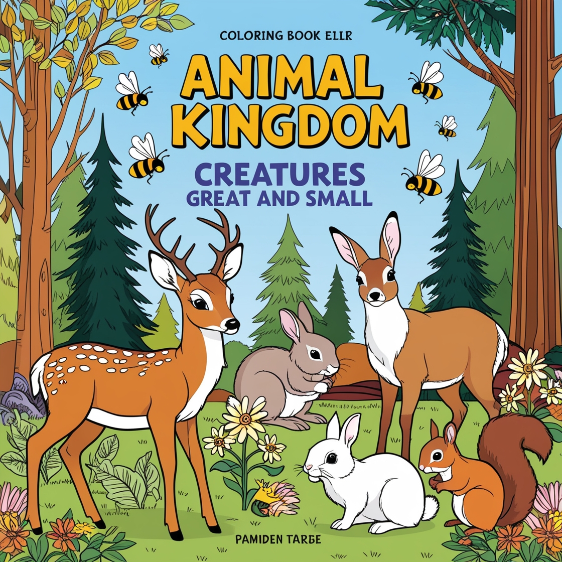 This artwork is simple yet detailed, making it a perfect coloring page for an adult or children's coloring book, offering opportunities to add vibrant colors to the animals, plants, and background.