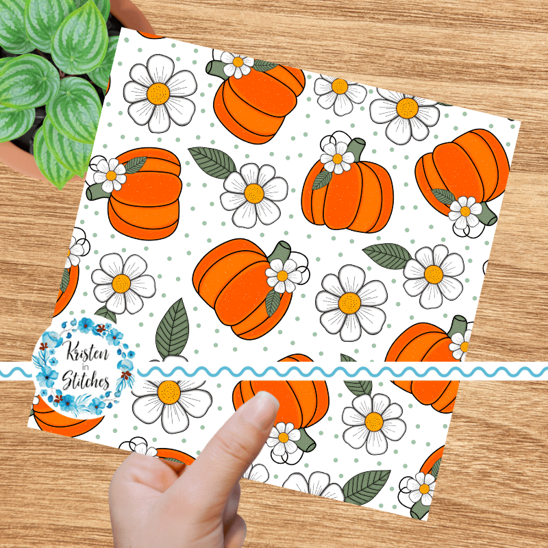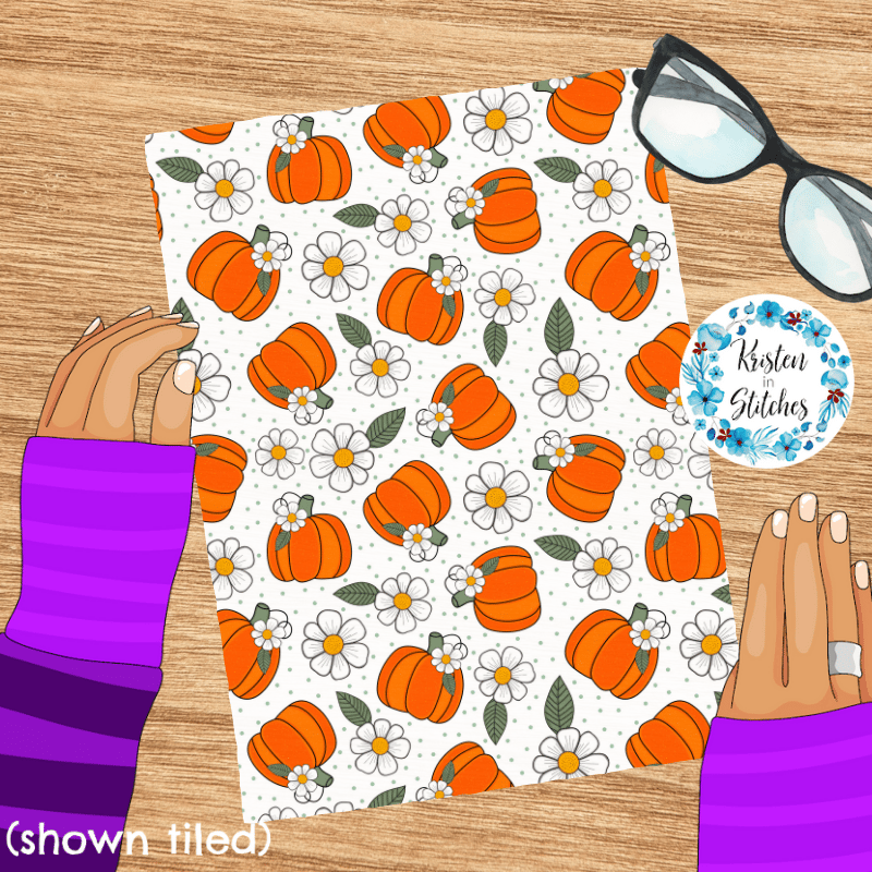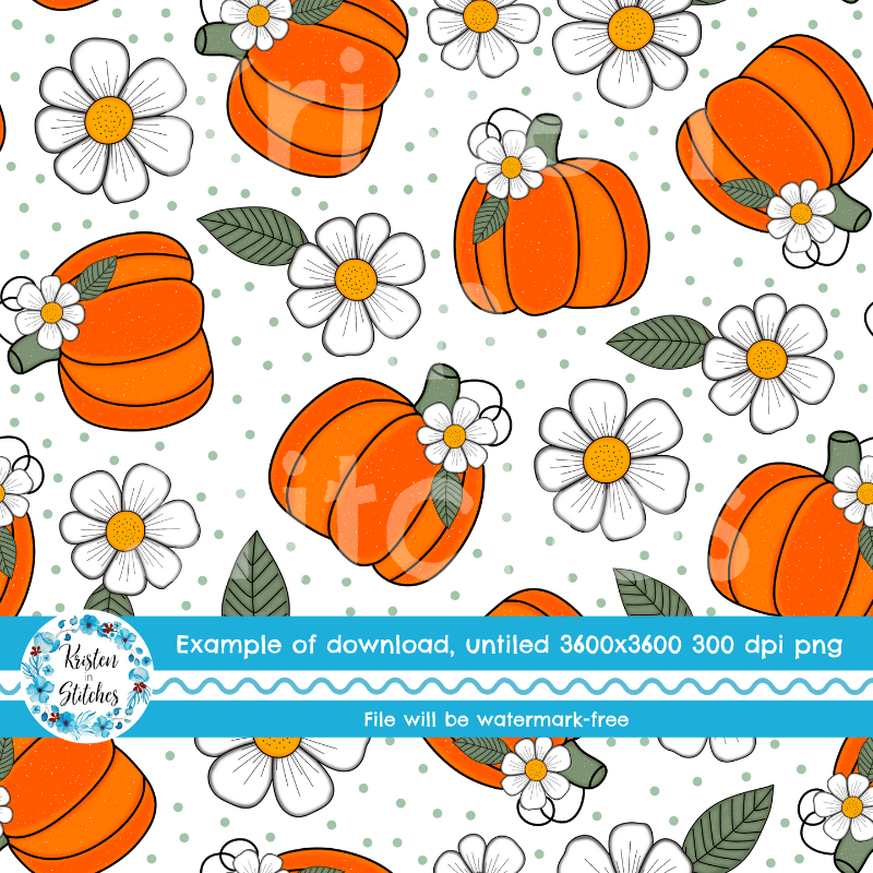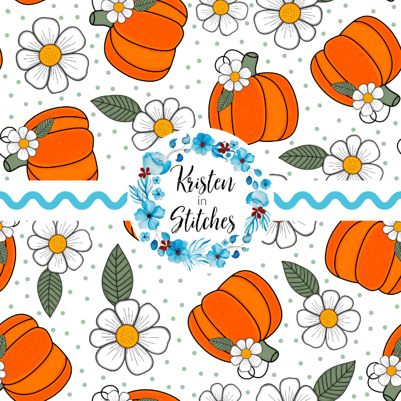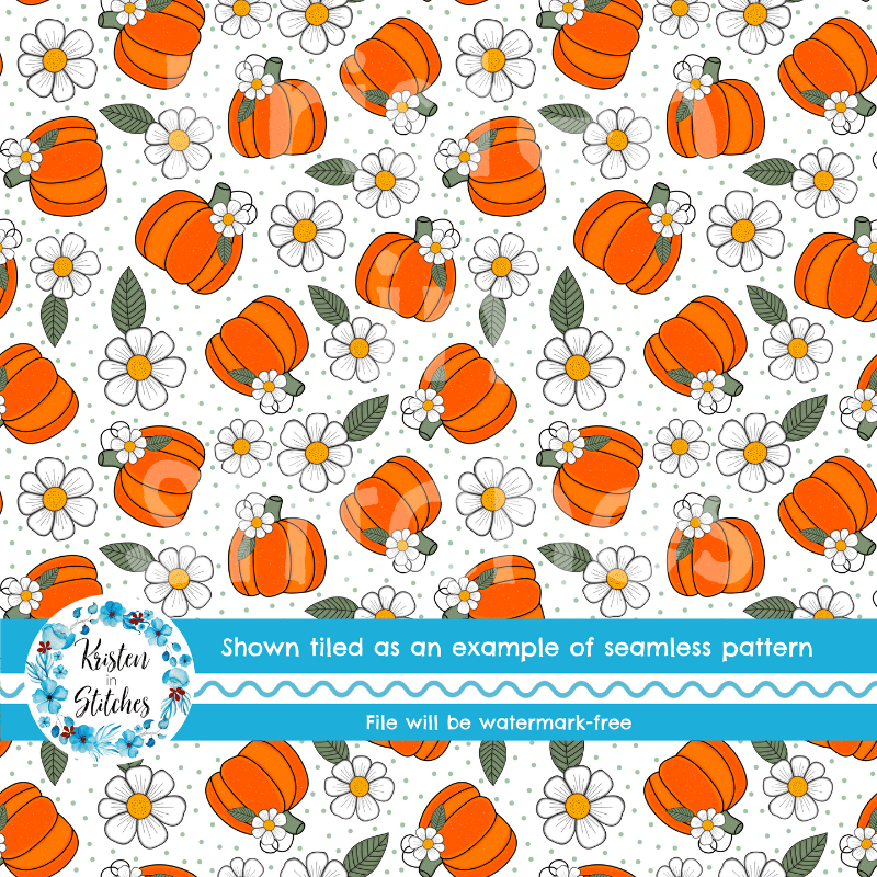 Little Pumpkin Halloween Daisy Flowers Seamless Pattern