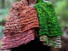 This collection is a series of 3 “neck thing” patterns (2 cowls and a shawl) that were released in October, November, and December 2020 respectively.