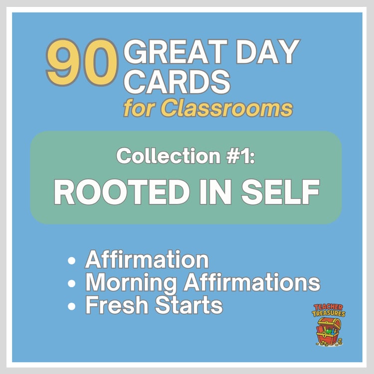 How: Display one card on the board or read it aloud as students settle in. Invite students to quietly reflect, turn-and-talk, or write one sentence in a journal. This sets a calm, intentional tone and helps students transition into learning.