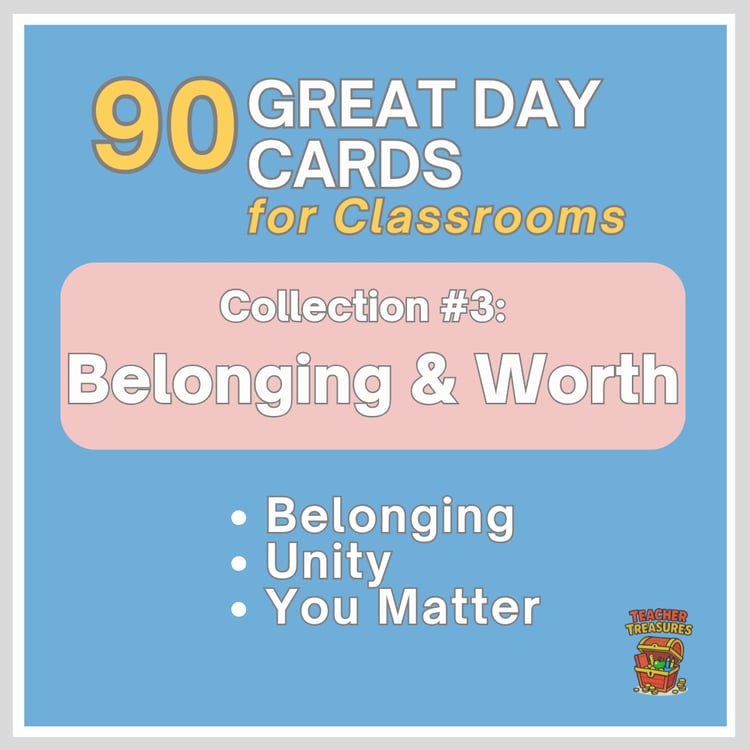 How: Use a card as the discussion prompt. Ask students to share how the message connects to their feelings, choices, or classroom relationships. This encourages empathy, belonging, and respectful listening.