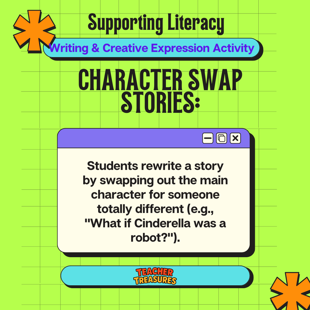 At Teacher Treasures, we know how powerful it can be to step away from the regular routine. This digital set includes 40+ engaging idea cards filled with quick, 1-2 sentence sparks for writing and creative expression activities that offer a refreshing break from the everyday. Each idea invites teachers to expand their creativity, experiment with new approaches, and re-energize literacy time - without adding extra planning. When you need inspiration right at your fingertips, these fresh ideas are there to help you try something new and keep learning exciting.