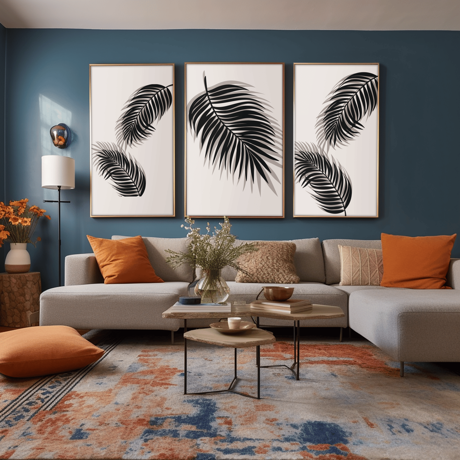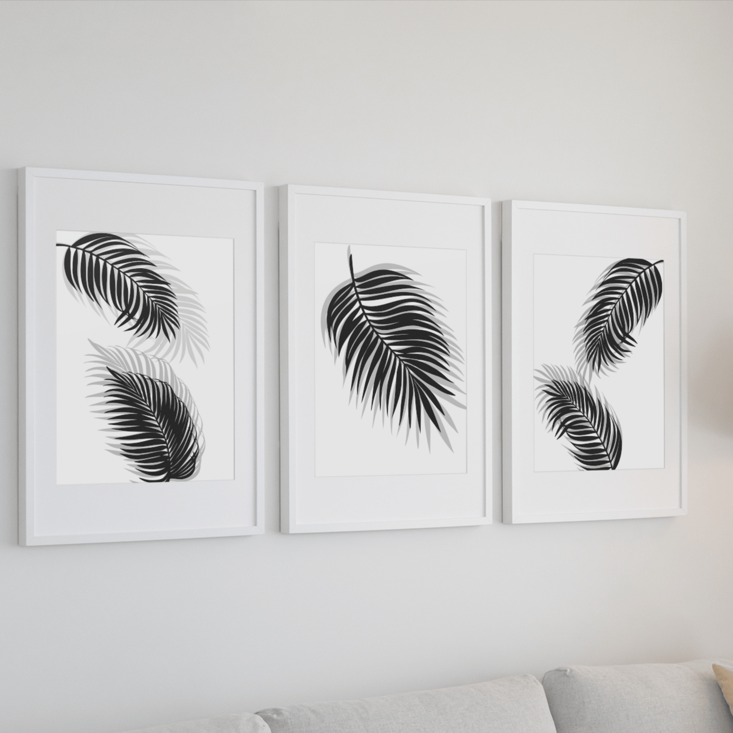 Designed with minimalist botanical leaves in monochrome tones, this printable set is perfect for living rooms, bedrooms, offices, apartments, and modern interiors.