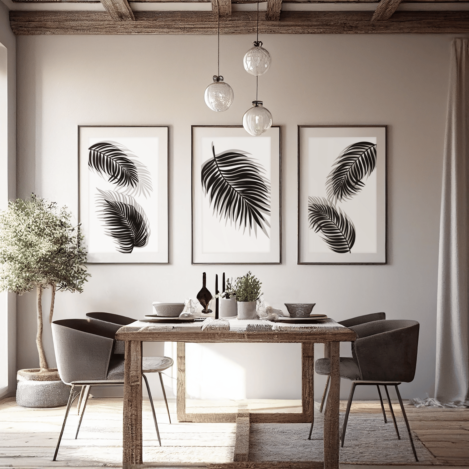 Add a clean, modern touch to your space with this black and white palm leaf wall art set of 3.