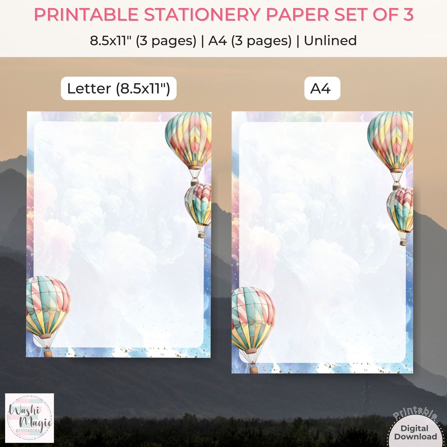 Pastel Hot Air Balloon Stationery Paper Printable Design