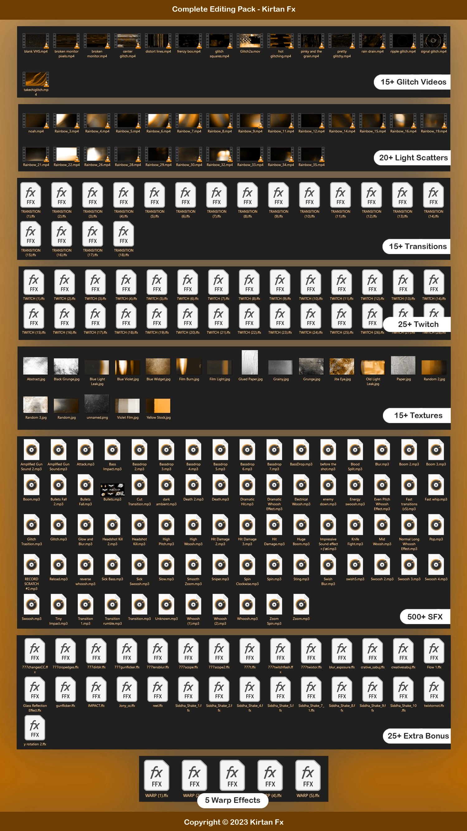 This Complete Editing Pack is specifically made for Beginners And Those Who Don't Want to Waste More Time Create All These Effects or Find All These kinds of Stuff in Different Places.