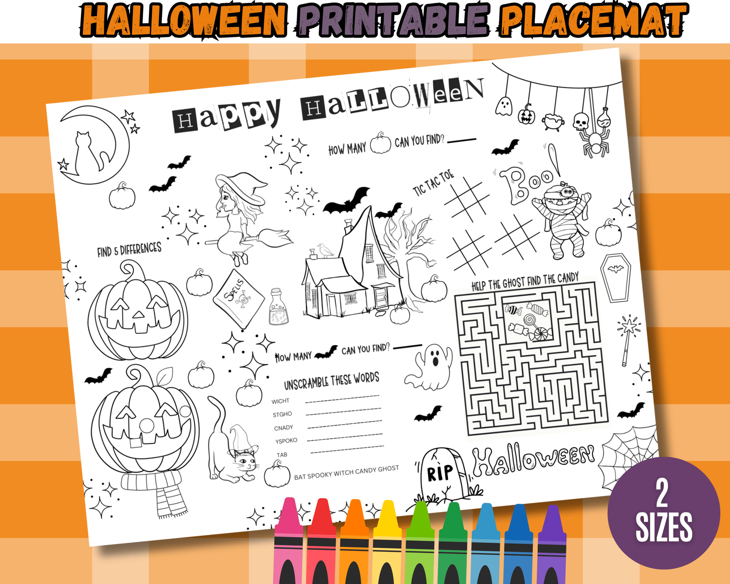 This Halloween Coloring Placemat is the perfect Halloween activity to make your kid's spooktacular holiday extra special!