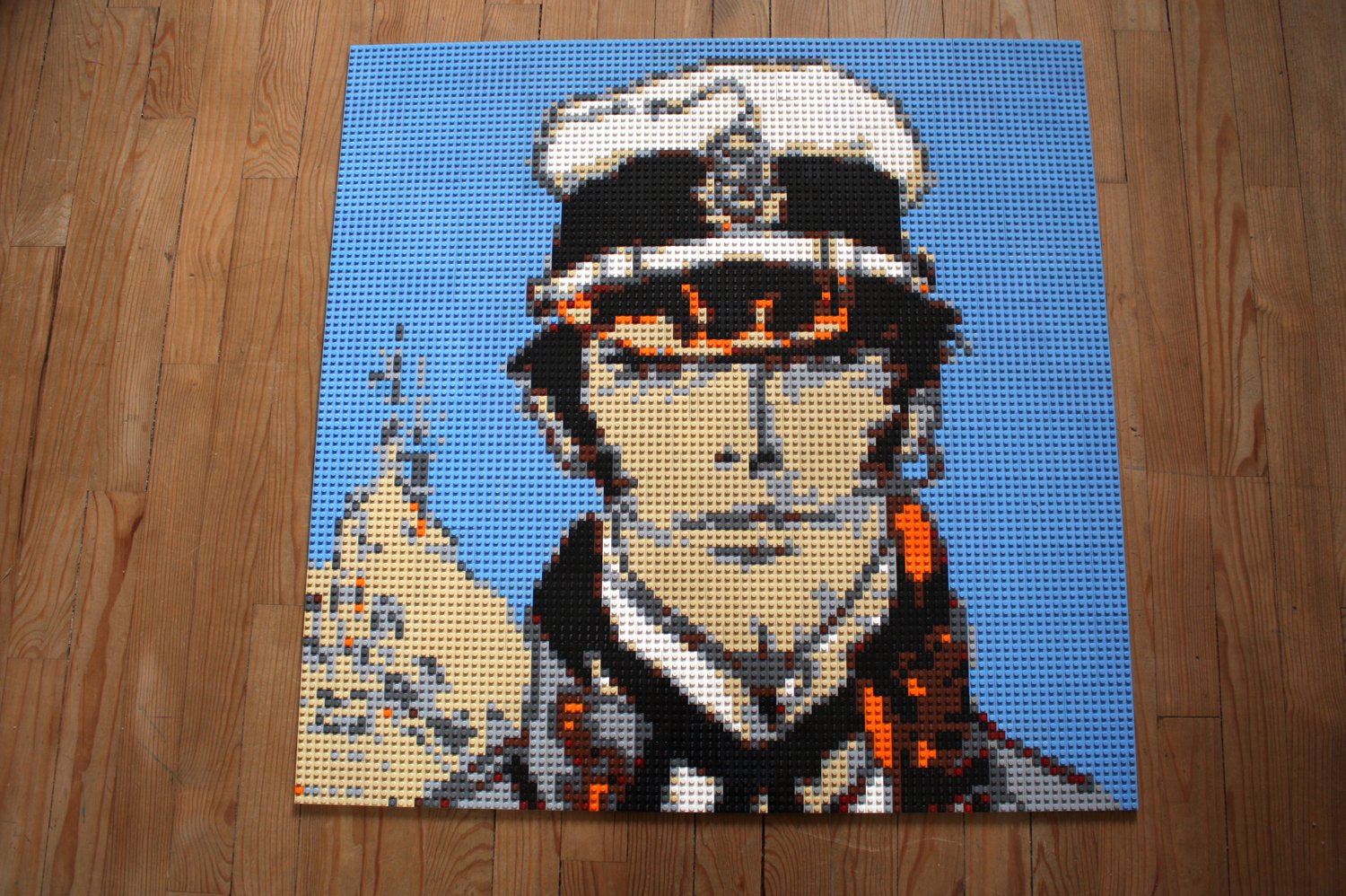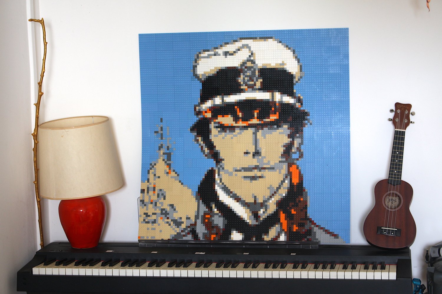 An original Brick Art Mosaic creation: the pirate of the South Seas, the anarchist adventurer, the hero of the great novels of Hugo Pratt : Corto Maltese !
