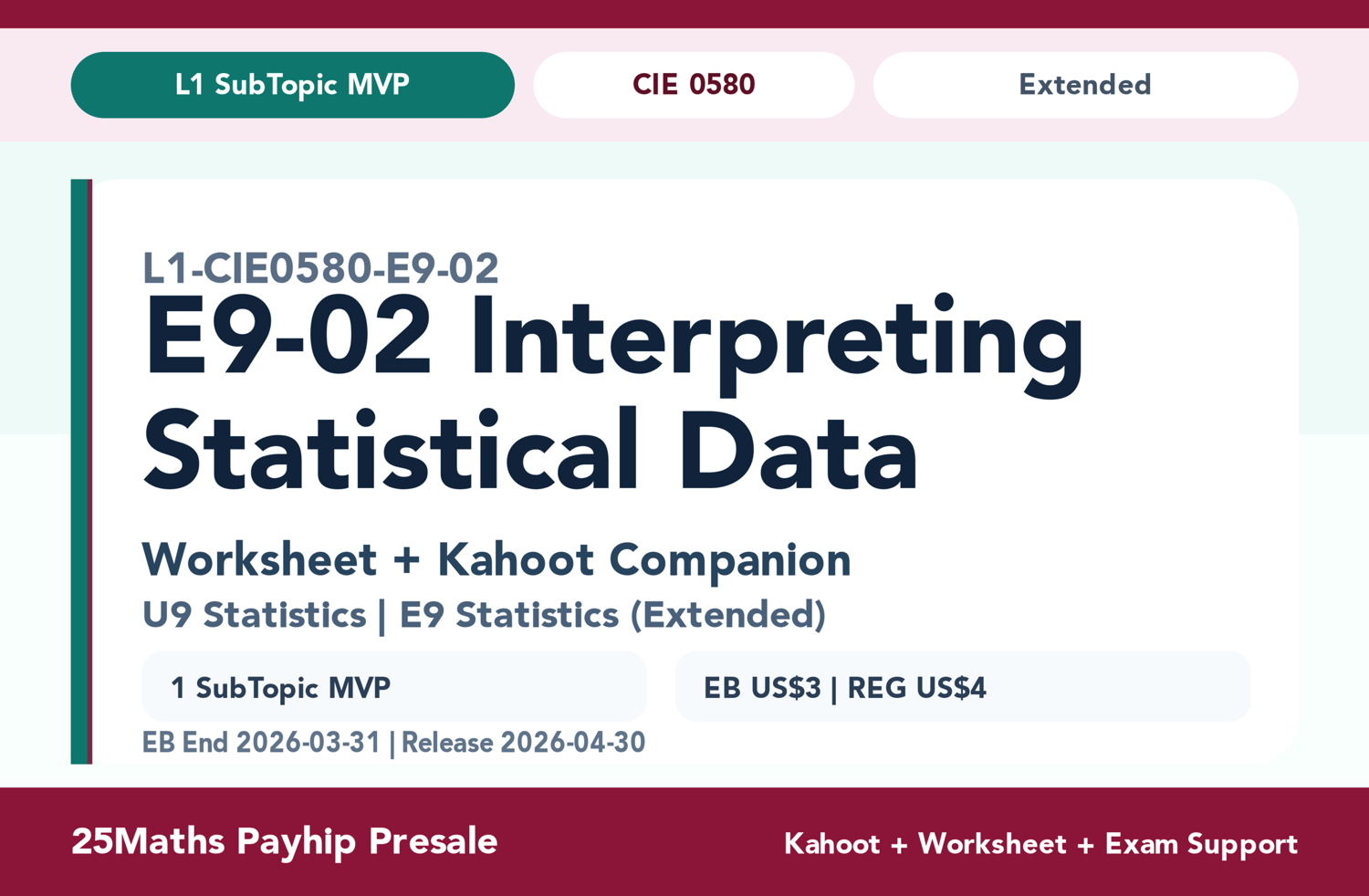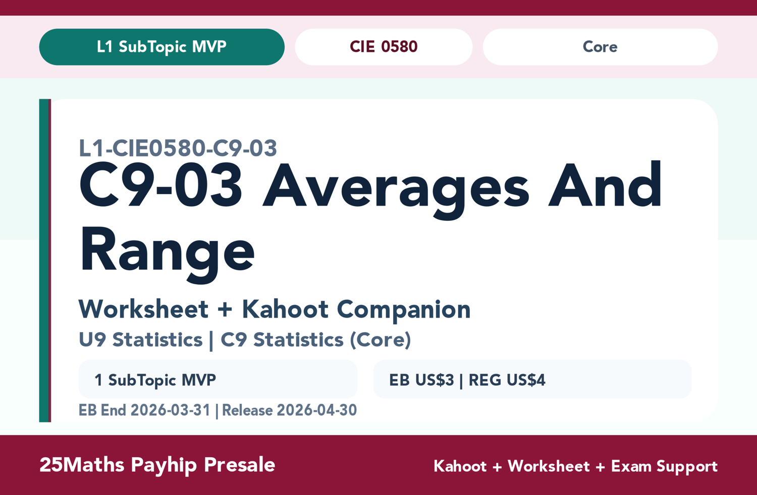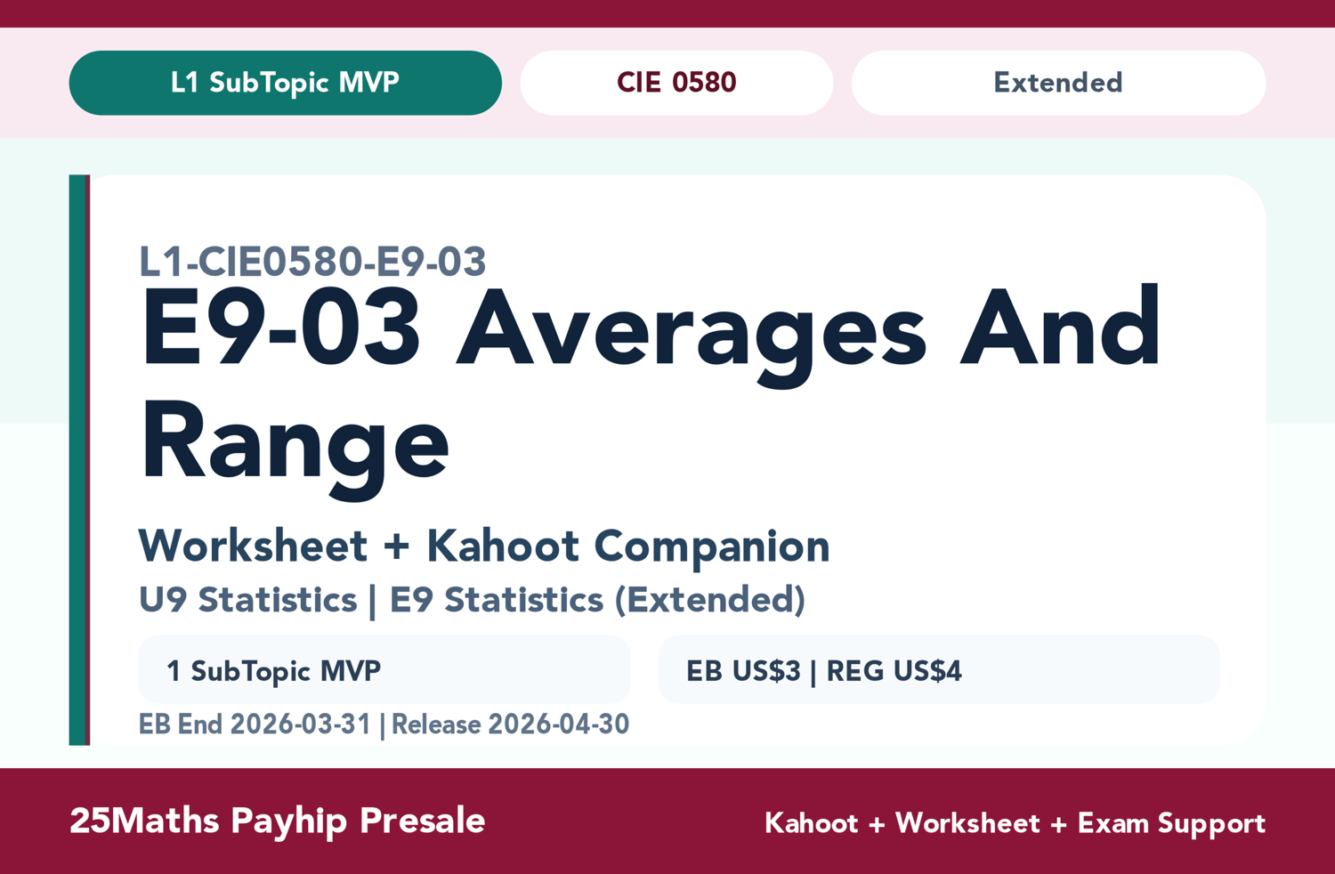 Master Averages and Range for your CIE 0580 Extended Exam with our Interactive Practice Suite! Whether you're a student securing your advanced marks or a teacher looking for engaging classroom resources, this worksheet and Kahoot combo is built directly from the official CIE syllabus.