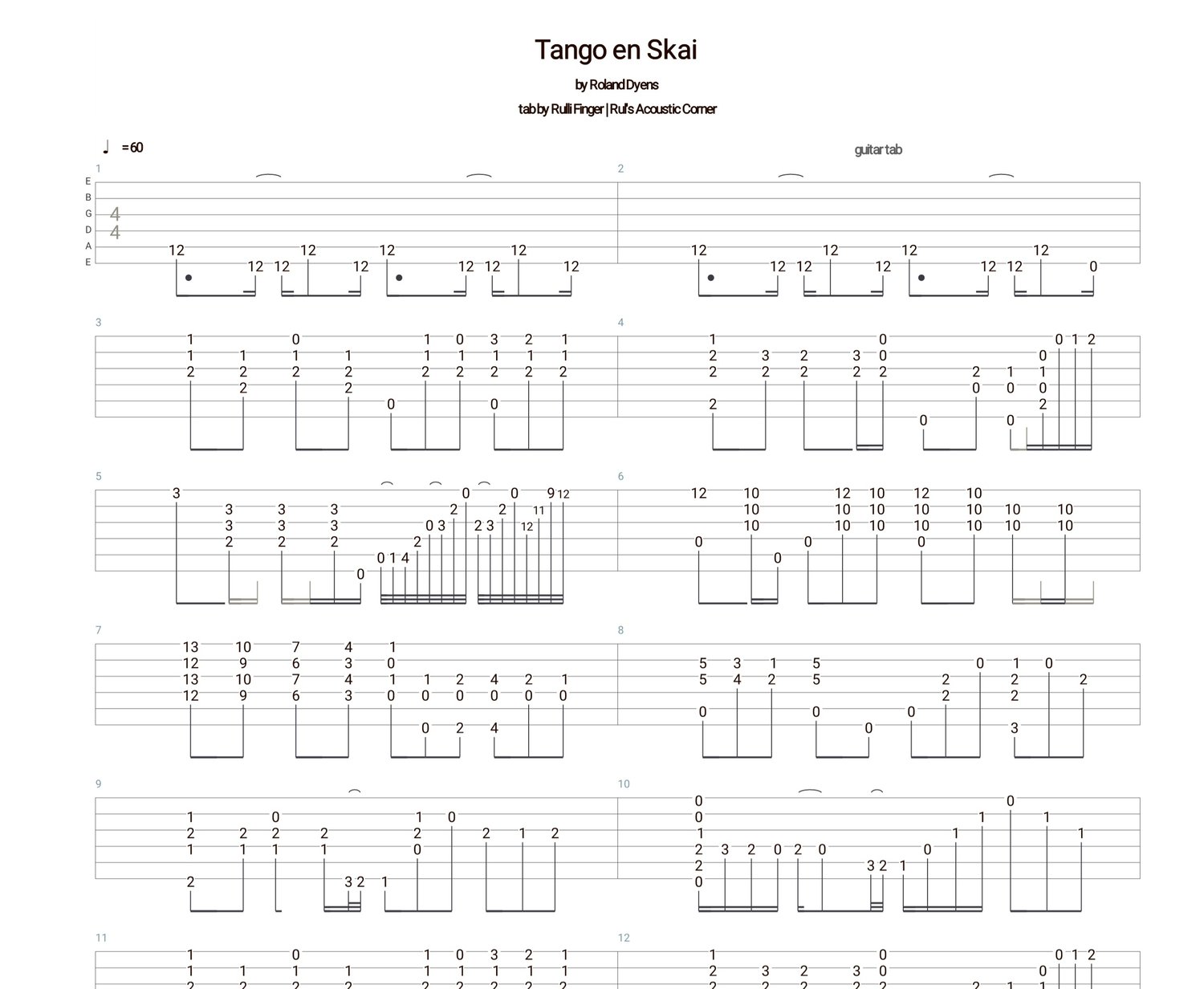 Tango en Skai - Roland Dyens Arrangrment Instrumental Fingerstyle guitar Tabs Arrangements lesson / tutorial collection sheet music PDF + video play slowly