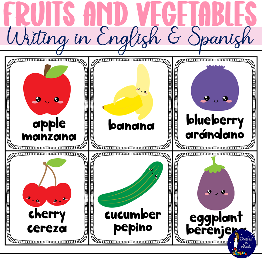 Fruits and Vegetables Writing in English and Spanish