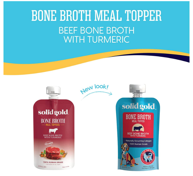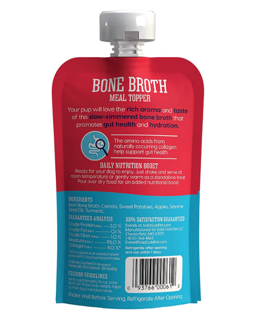 Solid Gold Beef Bone Broth for Dogs - Grain Free Dog Food Topper Rich in Collagen and Superfoods - Nutrient Dense Dog Gravy Topper for Dry Food - Promotes Gut Health and Hydration - Single