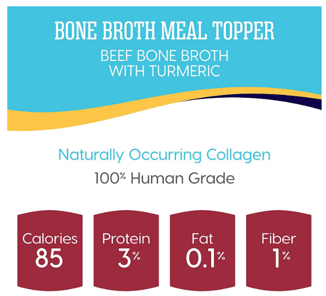Add a nutrient-rich and delicious flavor to your pup’s meal when you add Solid Gold Beef Bone Broth with Turmeric Dog Food Topper. This delectable topper is made with real, human grade beef bone broth and is rich in naturally occurring collagen, as well as vitamins and minerals essential for overall wellness. Added turmeric provides an aromatic and flavorful treat that even the pickiest eaters will love. Plus, this broth is easy for pet parents to use— simply add two tablespoons to your dog’s food as a tasty topper, use to moisten dry food for dogs with sensitive teeth, add to water for added flavor and to encourage proper hydration or serve on its own as a tasty treat.