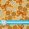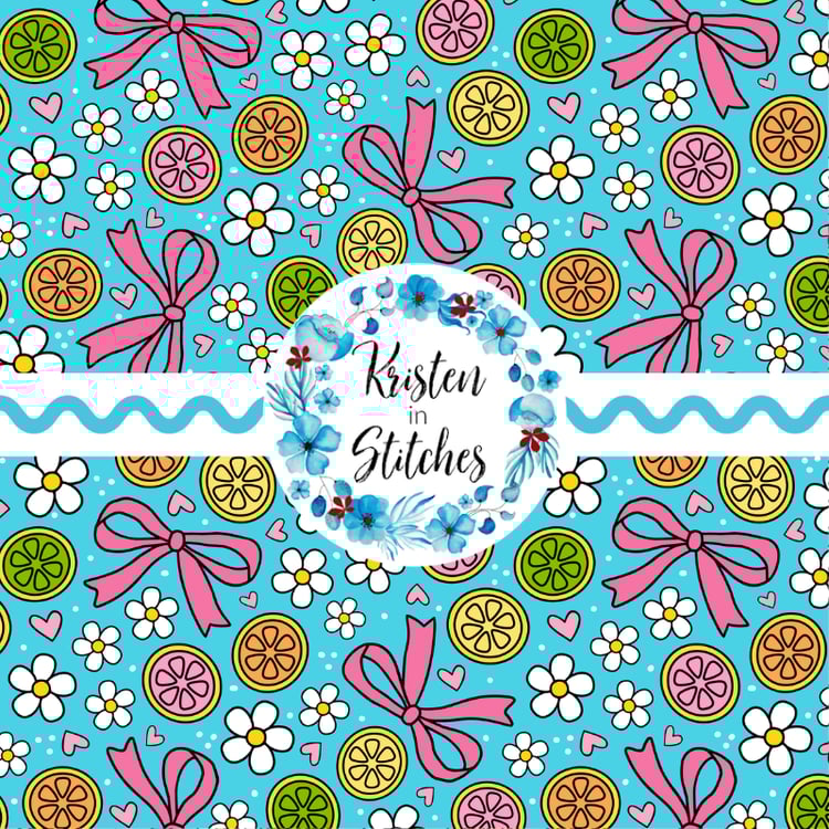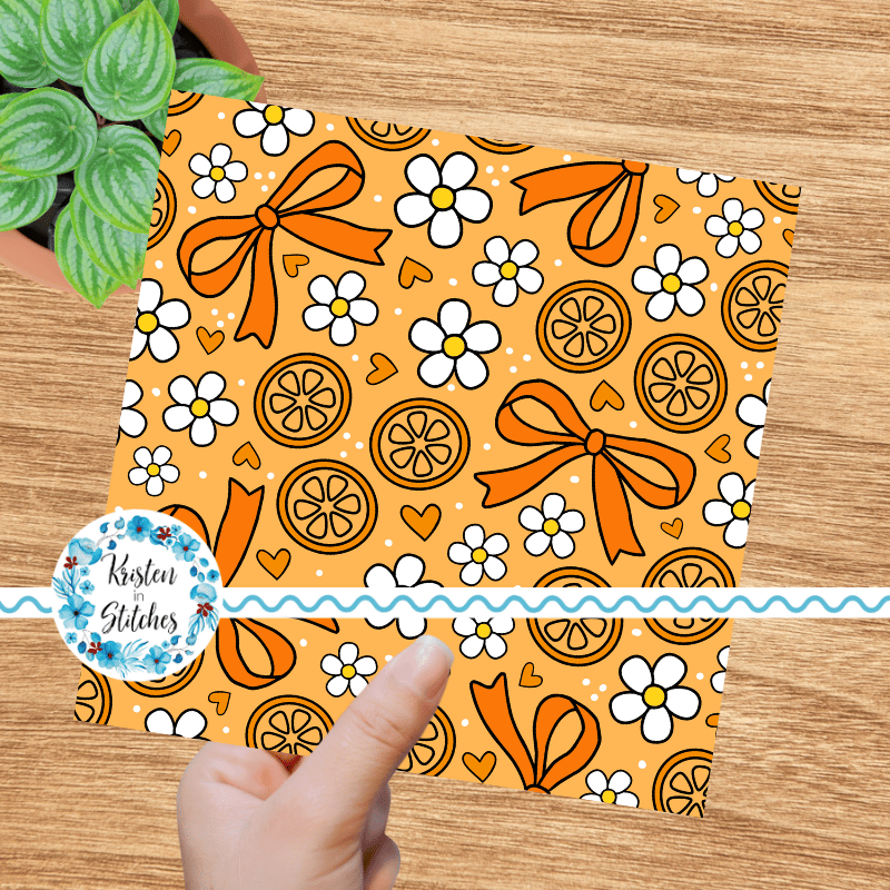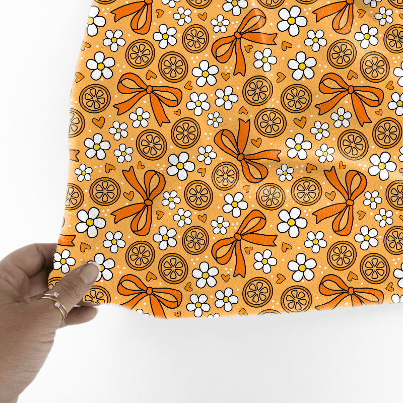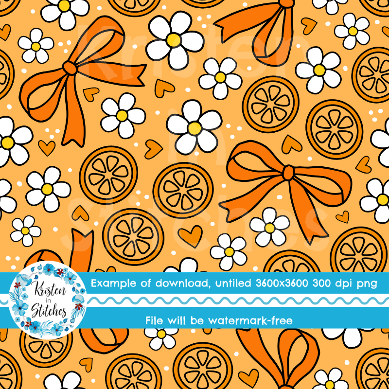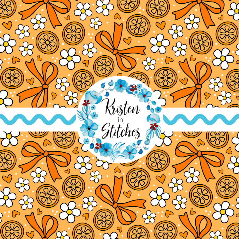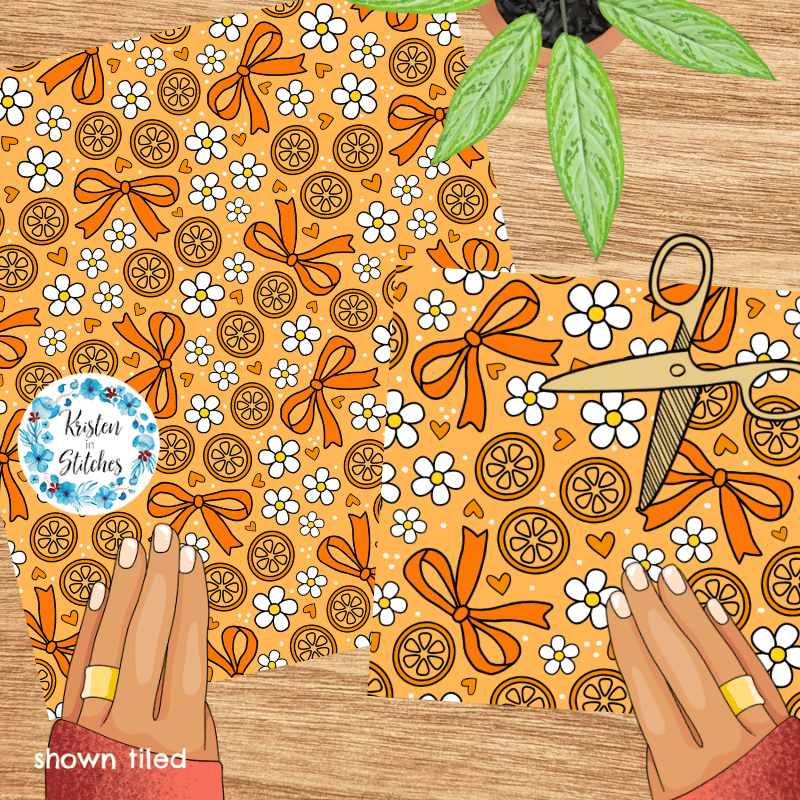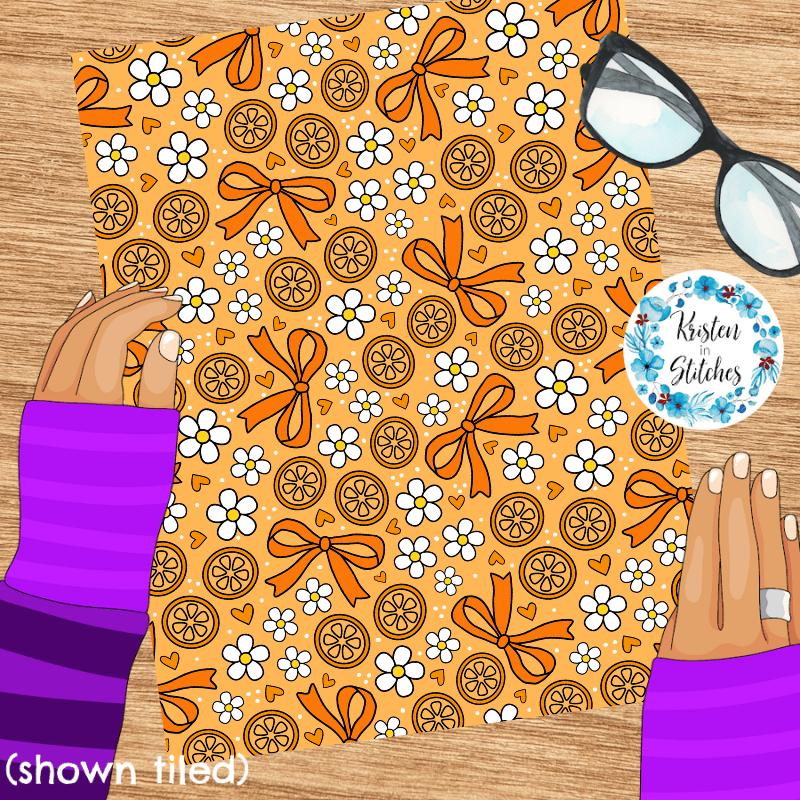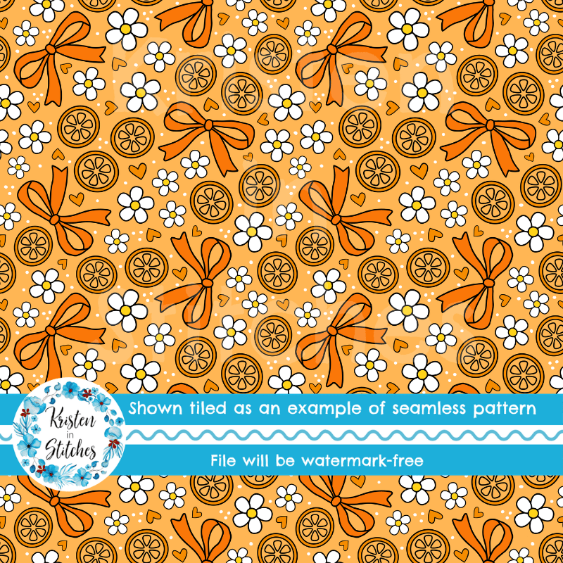 Coquette Fruit and Bows Floral Seamless Pattern, Orange Citrus Slices, Daisy Flowers
