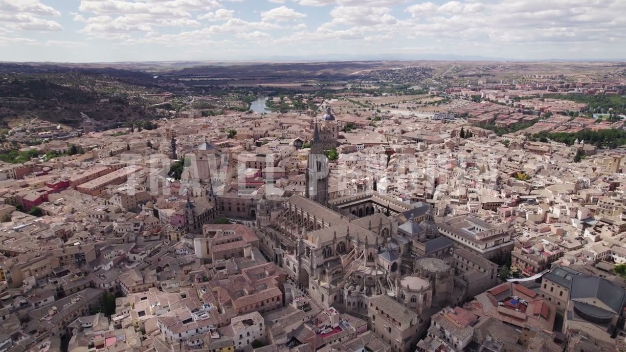 Toledo Spain, Toledo Castilla La Mancha, Castilla La Mancha Spain, central Spain, historic Toledo, Toledo old town, medieval city Spain, UNESCO World Heritage Toledo, hilltop city Spain, Tagus River Toledo, city of three cultures, Spanish heritage city, Toledo skyline, Toledo cathedral, Catedral Primada Toledo, Alcazar of Toledo, Alcazar Toledo, Monastery of San Juan de los Reyes, Puente de San Martin Toledo, Spanish monuments, historic landmarks Spain, medieval architecture Spain, Gothic cathedral Spain, cultural heritage Spain, Toledo aerial view, drone footage Toledo, aerial cityscape Spain, cinematic drone Spain, 4K aerial footage, vertical drone footage, travel stock footage, stock video Spain, commercial drone footage, Europe travel destination