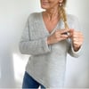 Techniques: knit, purl, short rows , pick up sts, 3-needle-bind off (techniques are explained in the patten with foto tutorials)