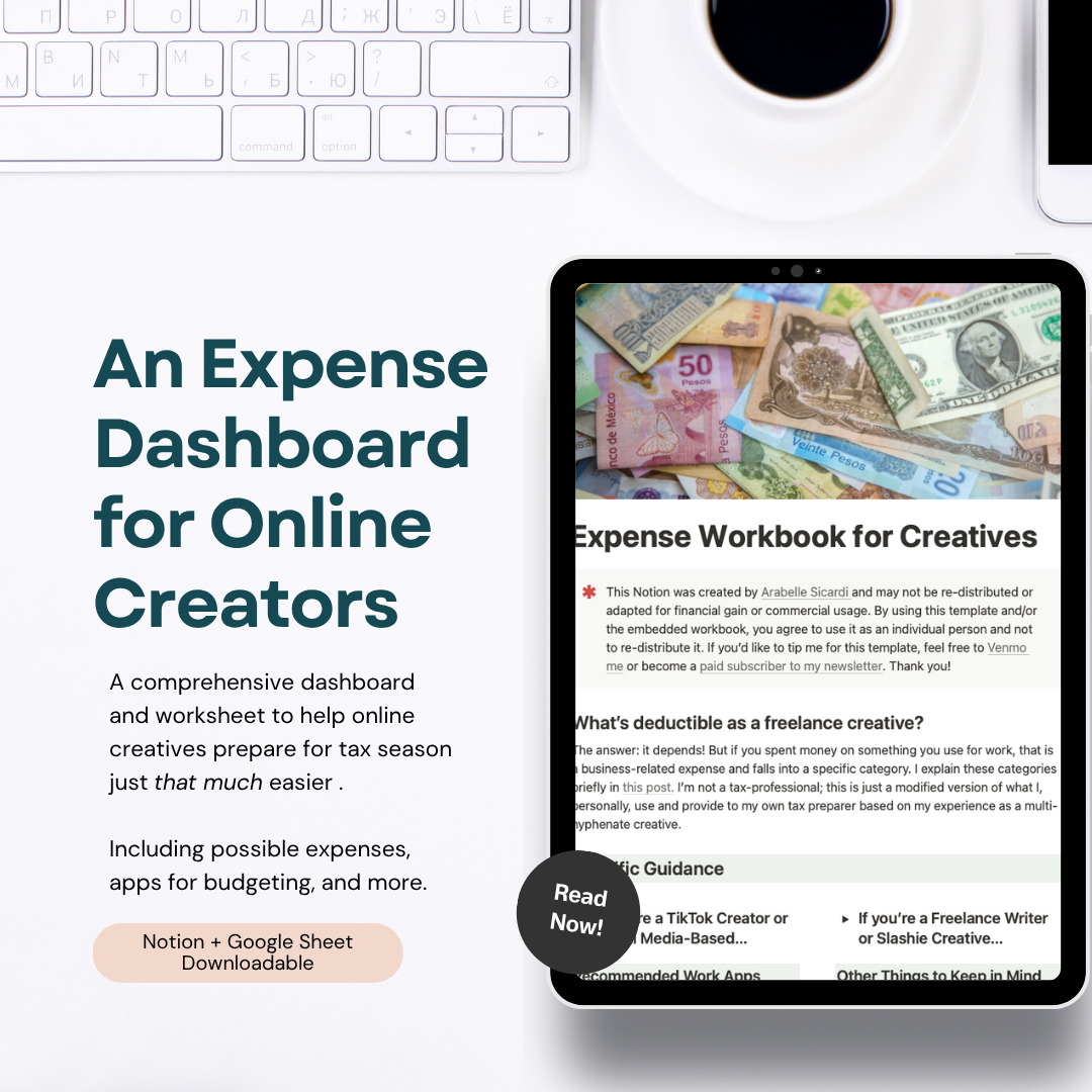 Are you an online creative - an influencer, content creator, UGC maker, freelance writer, digital consultant, whatever - and crying about how messy your taxes are every season? I get it. But it could be easier. As someone who's been in this space for over a decade across all kinds of niches - I've spent a lot of time figuring out what possible deductions I can make with my tax team and how to frame my business practices. I am now sharing that knowledge with you.