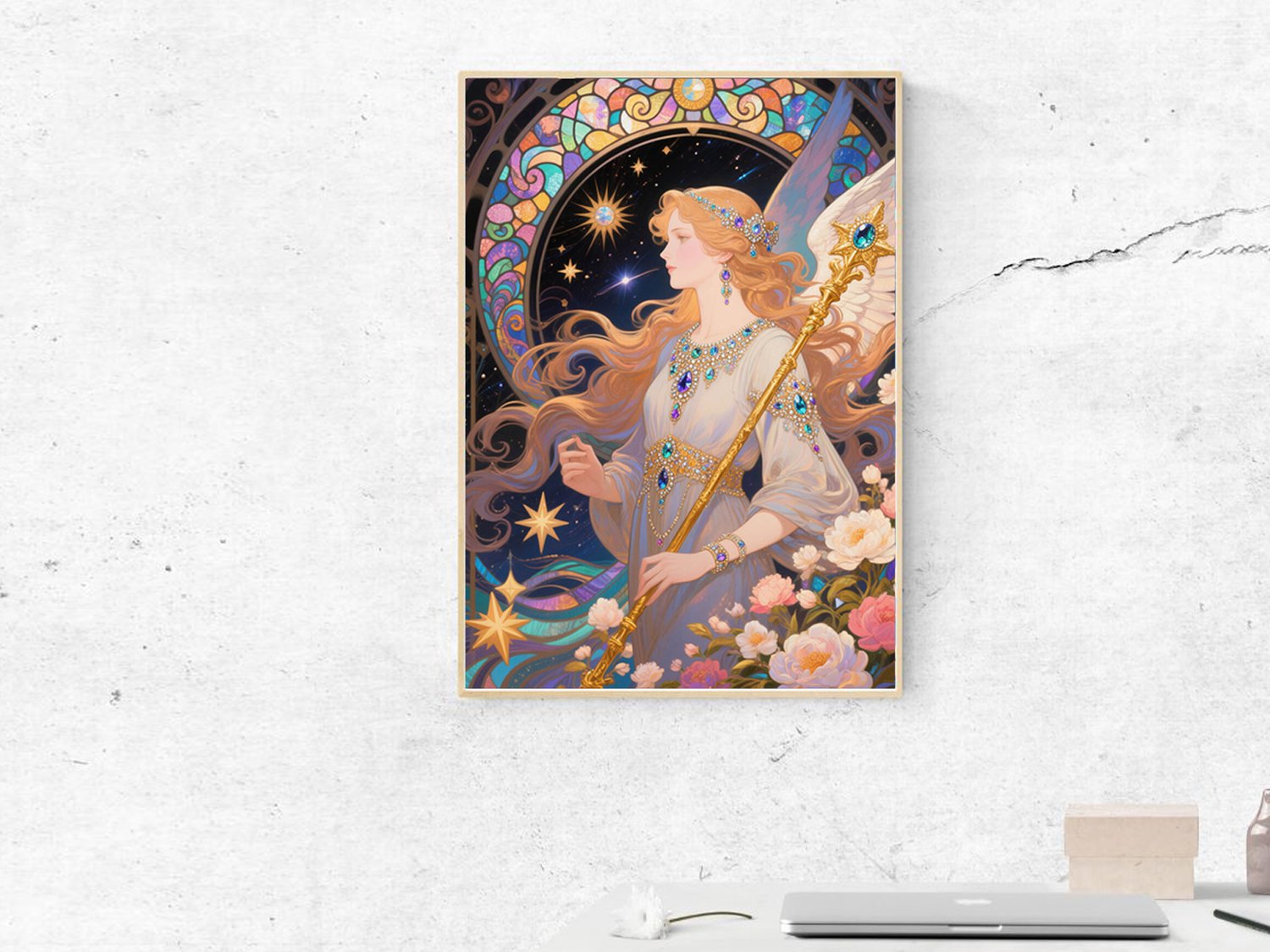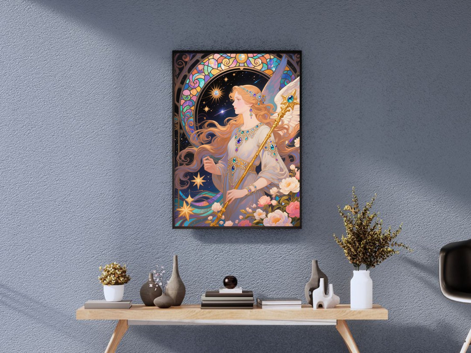This Art Nouveau-inspired piece features elegant curves, intricate details, vivid colors, and stained-glass-like effects, creating a dreamlike atmosphere that brings abundant energy to your space.