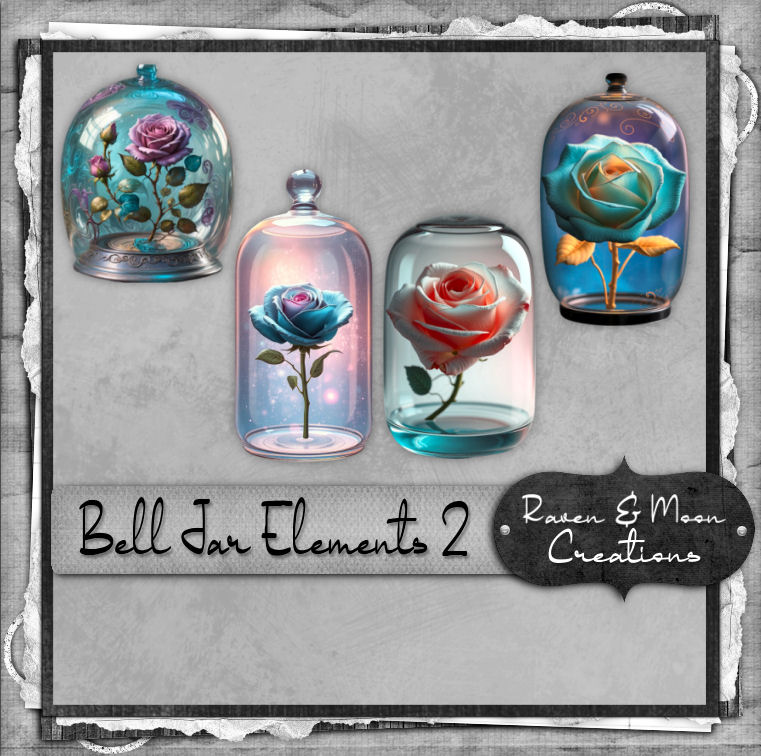 Four tagger-size flowers inside a glass bell jar elements. Ready to use.