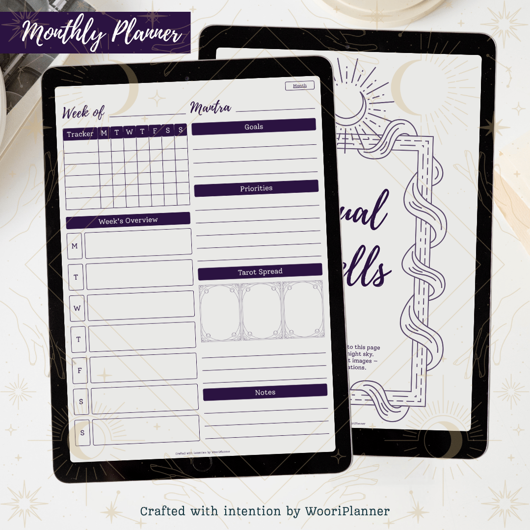 Witching Smoke Digital Planner Kit (Monthly and Weekly Planner + Functional and Tarot Stickers, GoodNotes & Printable)
