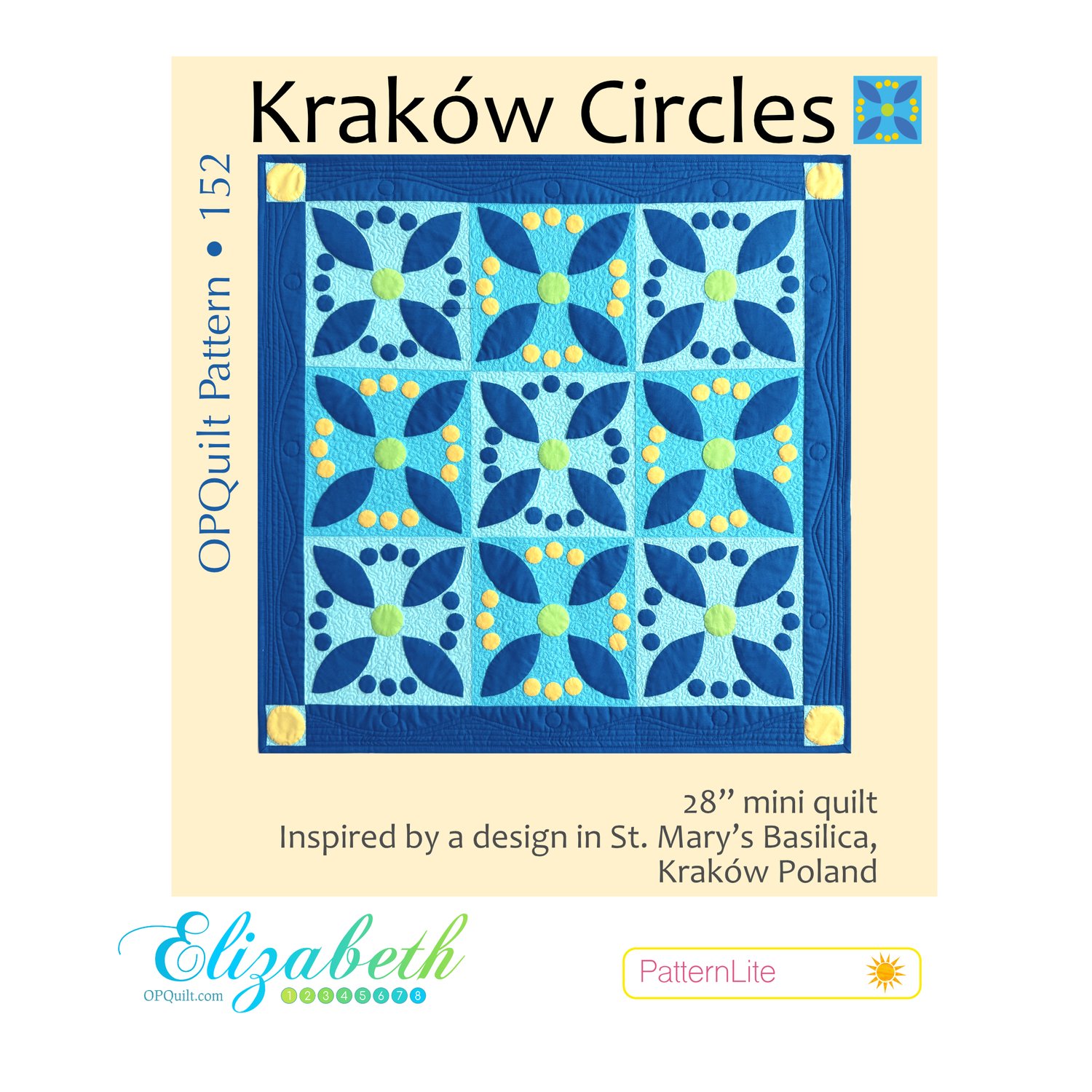 Another in a series of patterns for PatternLite, the Krakow Circle pattern has full-sized templates, multiple illustrations, and pages for printing out on freezer paper to make the circles. This pattern is geared for a skill level for beginner, with some experience.