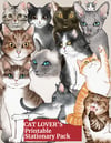 Cute Cat Printable Stationery Bundle - Digital Letter Writing Paper Set
