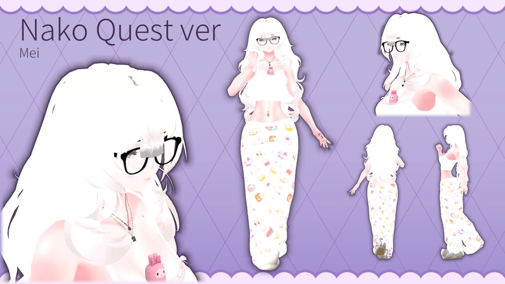 12 Accessories - Long nails, Rings, Glasses, Necklace 1, Necklace 2, Collar, Belly ring, Head wings, Ruffled headband, Kuromi, My melody, Cupcakes