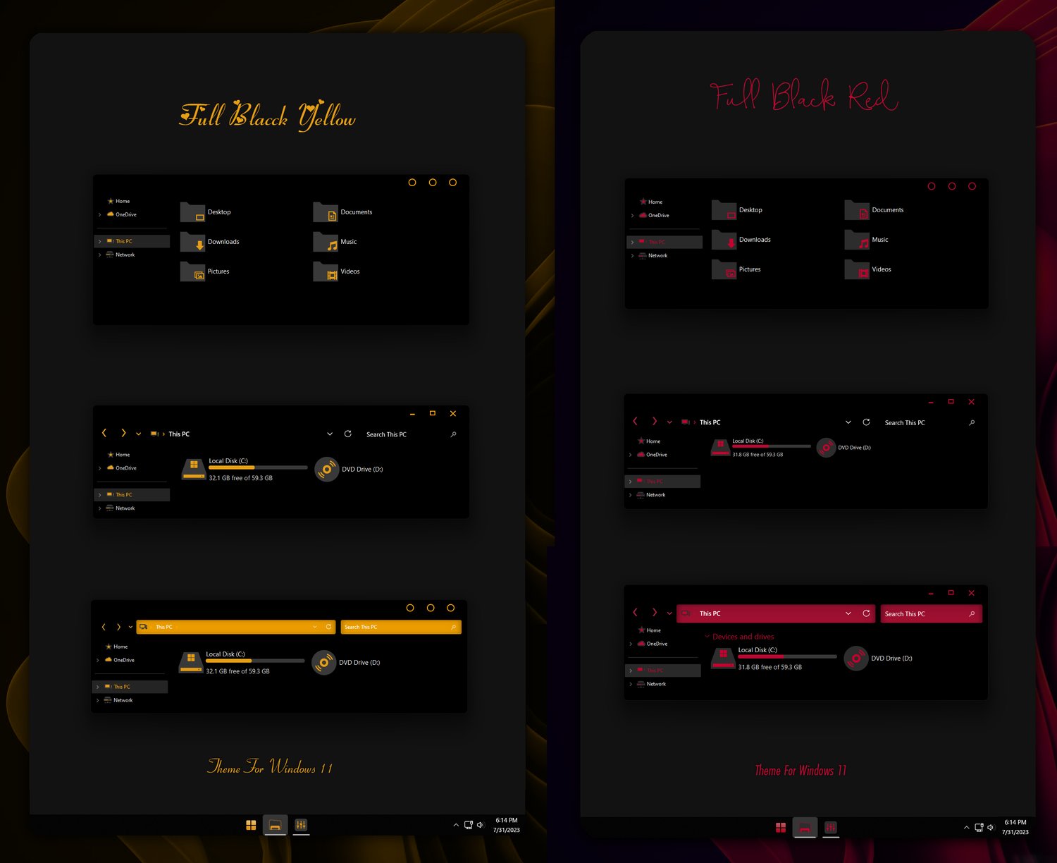 Full Black Yellow And Red Theme For Windows 11