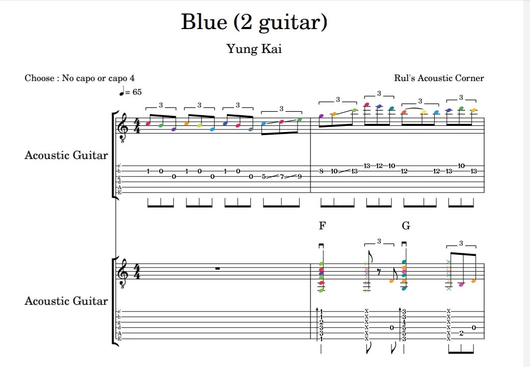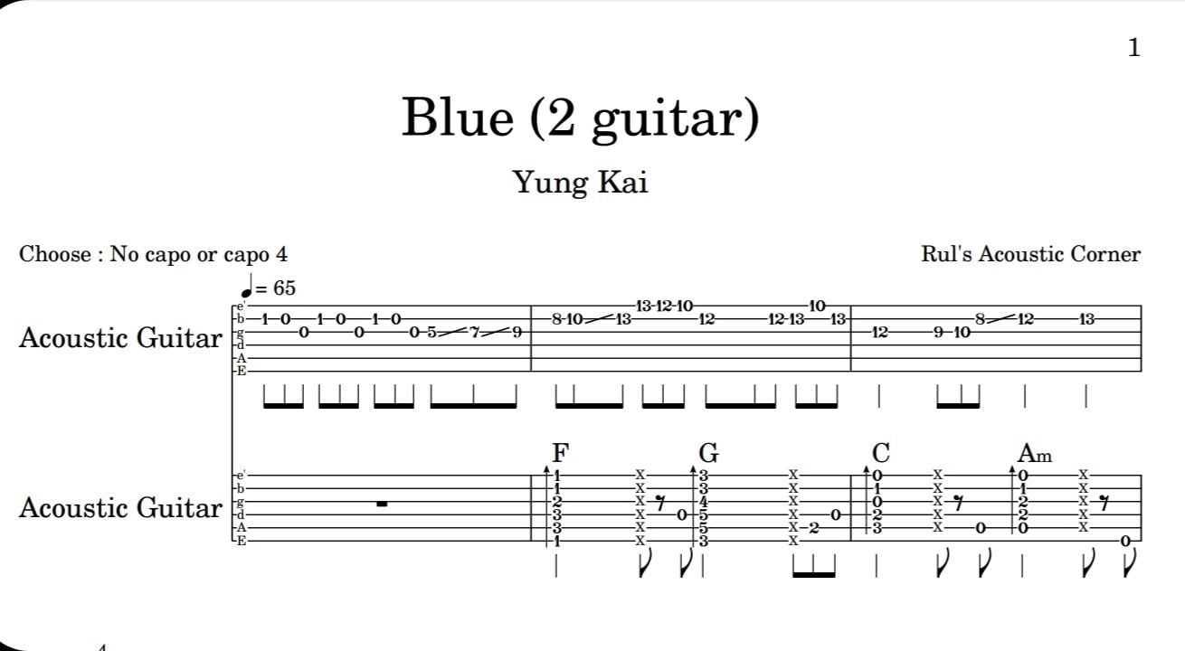 Sampel Lesson Instrumental Blue - Yung Kai 2 Guitar Musical Notes Tabs High Quality PDF Video Tutorial Download