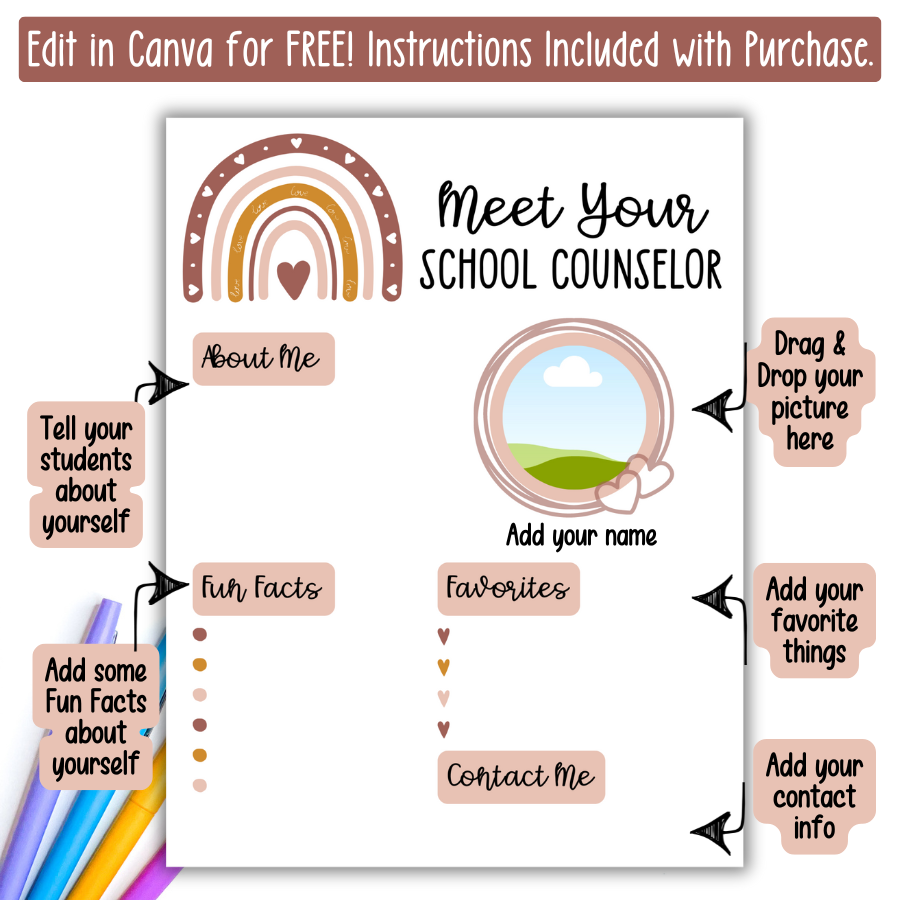 Meet the Counselor Template Editable | Counselor Newsletter | Boho Newsletter