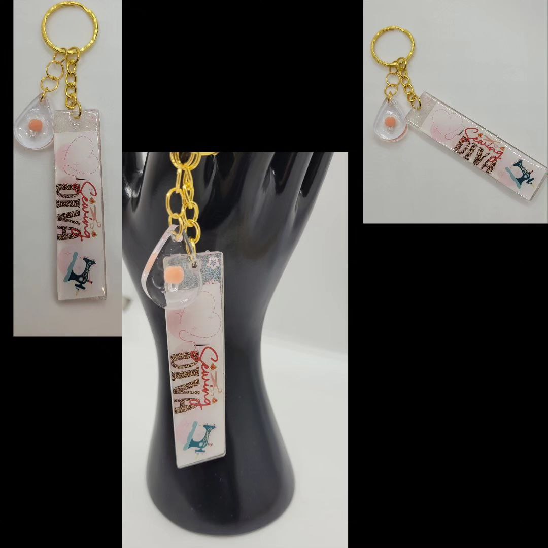 Sewing Diva Keychain w/charm - Order ID SDKC