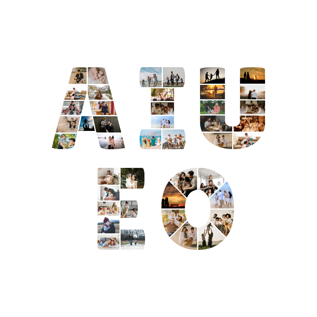 Showcase your favorite memories in a stylish and creative way with this Letter AIUEO Collage Canva Template! Designed for easy customization in Canva (free or Pro), this template allows you to drag and drop photos into a monogram style frame, perfect for home decor, personalized gifts, or special events.