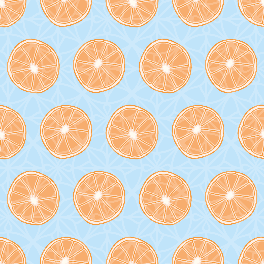 Orange slice vector repeat pattern. Cute citrus halves seamless illustration background.