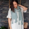 850 m / 930 yds of light fingering weight linen or linen blend yarn.(Scarf: 770 m / 842 yds, tassels: 80 m / 88 yds)