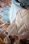 Siksak is a light, summery scarf with zigzag shaped ends that are decorated with tassels.