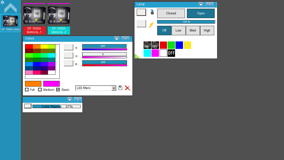 - Desde el Panel de Macros o alargando el Panel de Lámpara, tenemos los íconos: