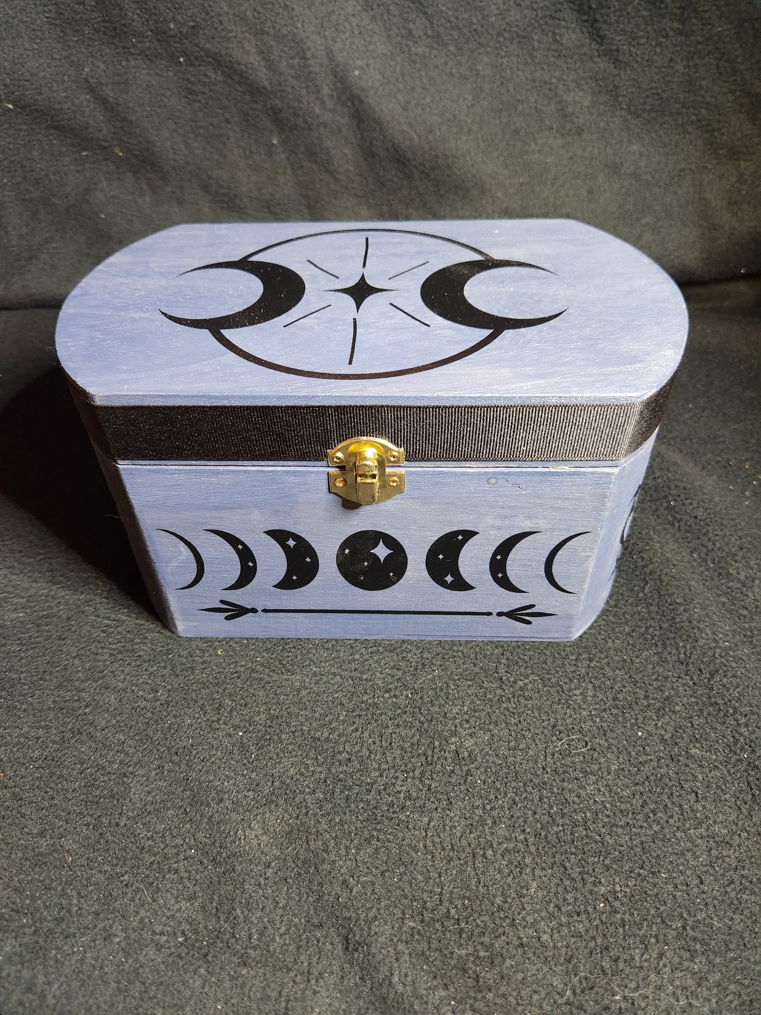 These well-crafted boxes can be left open or stored closed on a table or shelf (for anyone who is discreetly practicing their magick). Box is so beautifully designed that it is sure to be admired wherever it is placed!