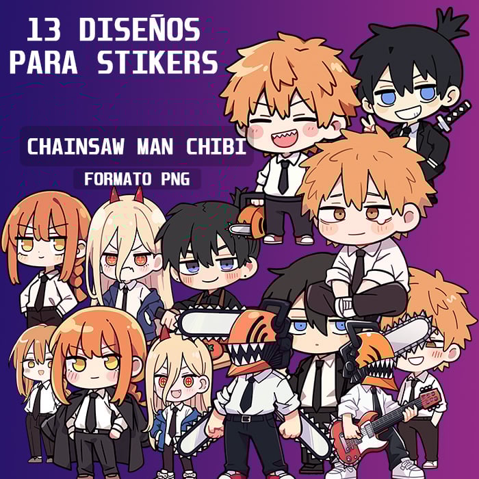 Set of 13 Chainsaw Man sticker designs in PNG format. Perfect for custom stickers, printing, sublimation, DTF, DTG, and more. Instant digital download, ready to use for all your creative projects.