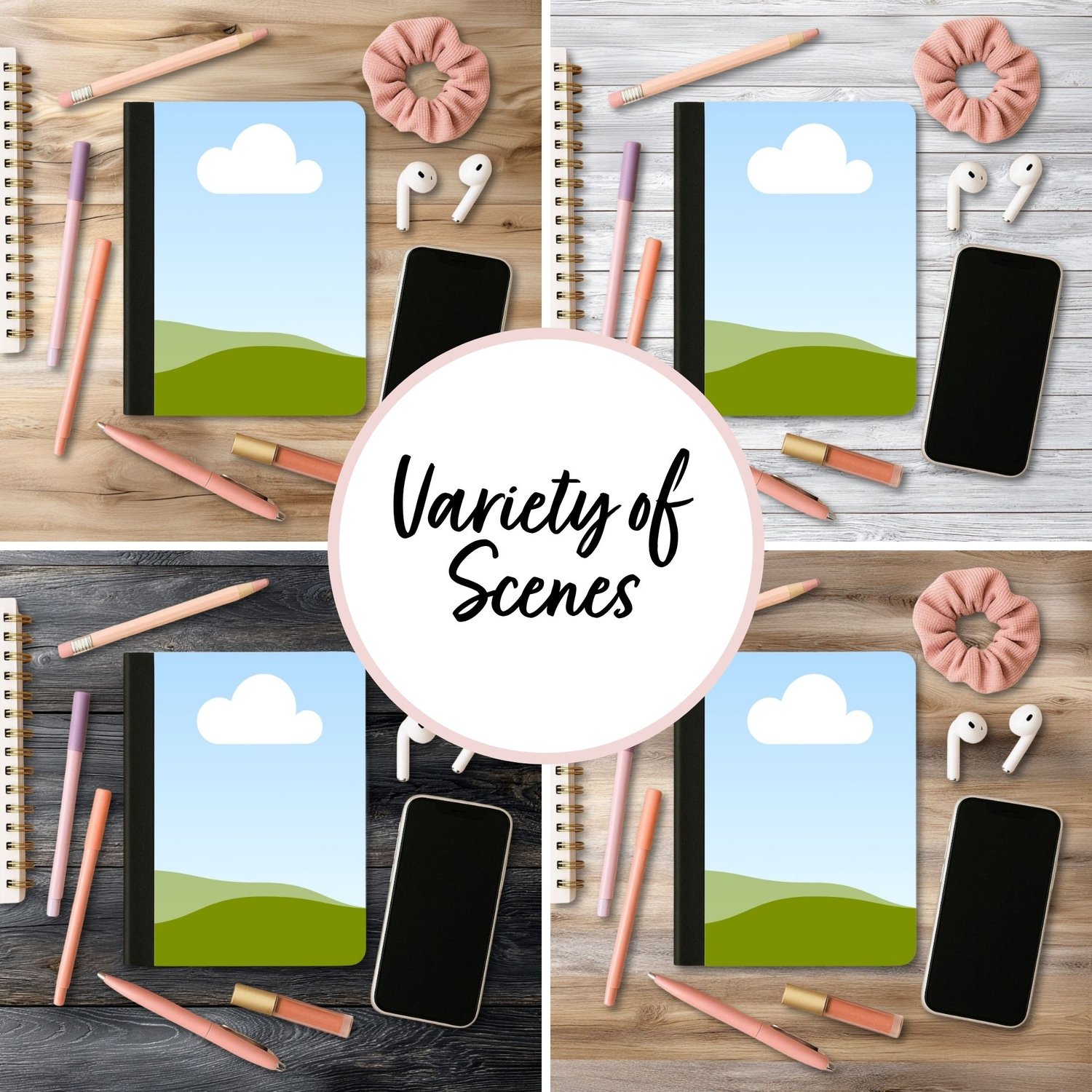 This Canva mockup bundle includes 8 sleek, modern composition notebook templates—perfect for digital paper, PNG files, or printable cover designs. No Photoshop needed! Just drag your design into the frame in Canva and download a polished, professional image in seconds.
