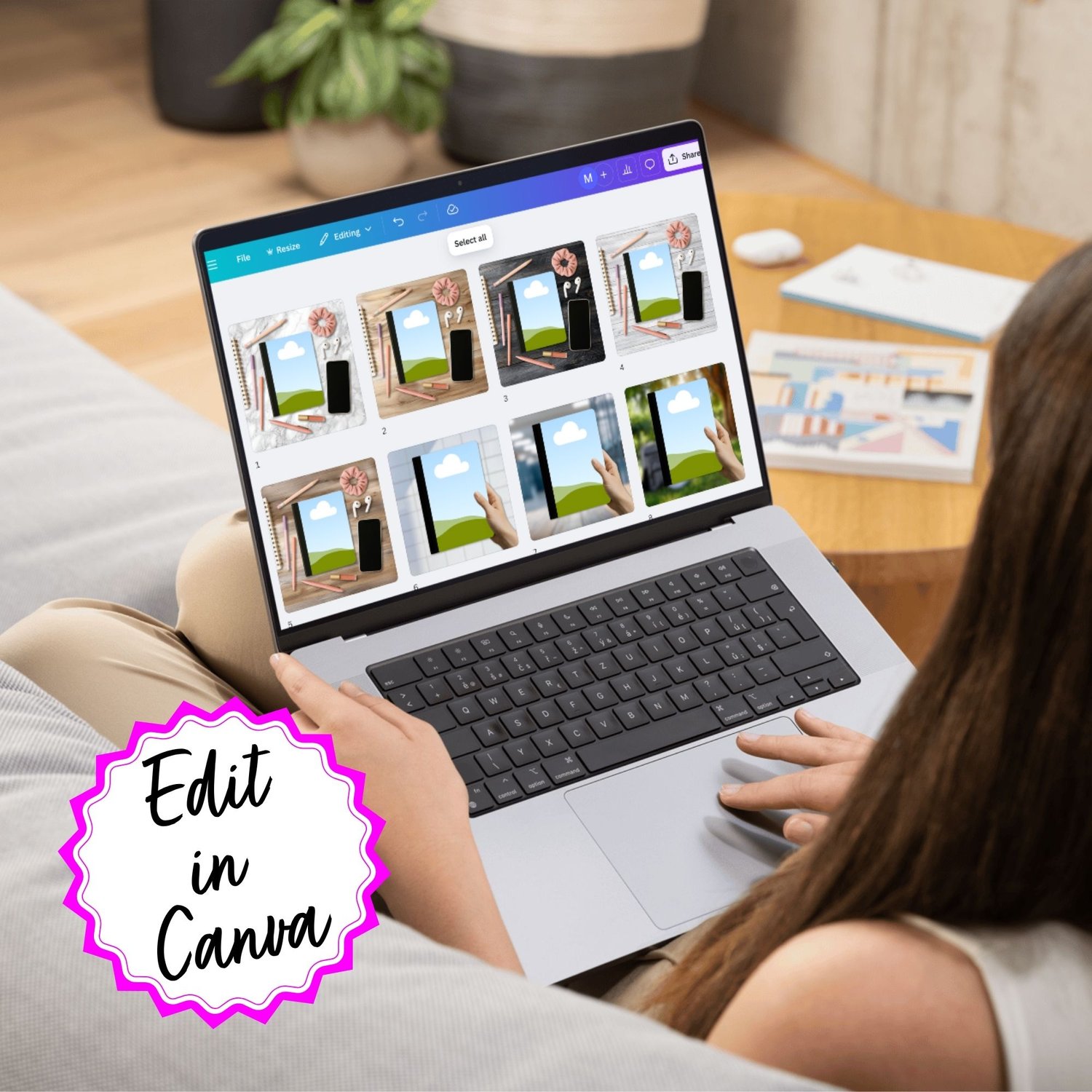 This is a digital template for Canva. No physical item will be sent. You may use this mockup to showcase your own products, but the template itself may not be resold or shared.