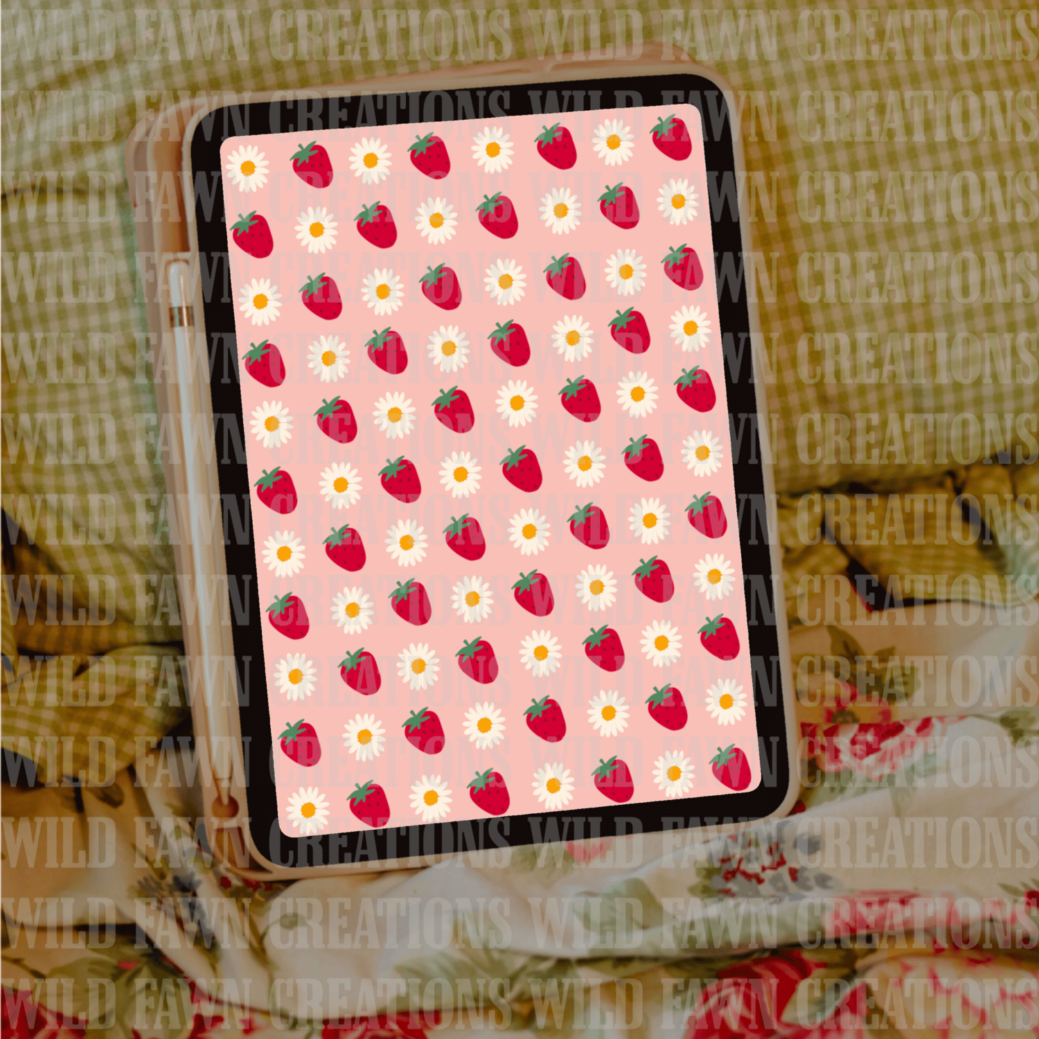 Strawberries and Daisies Seamless Pattern | Summer Digital Paper