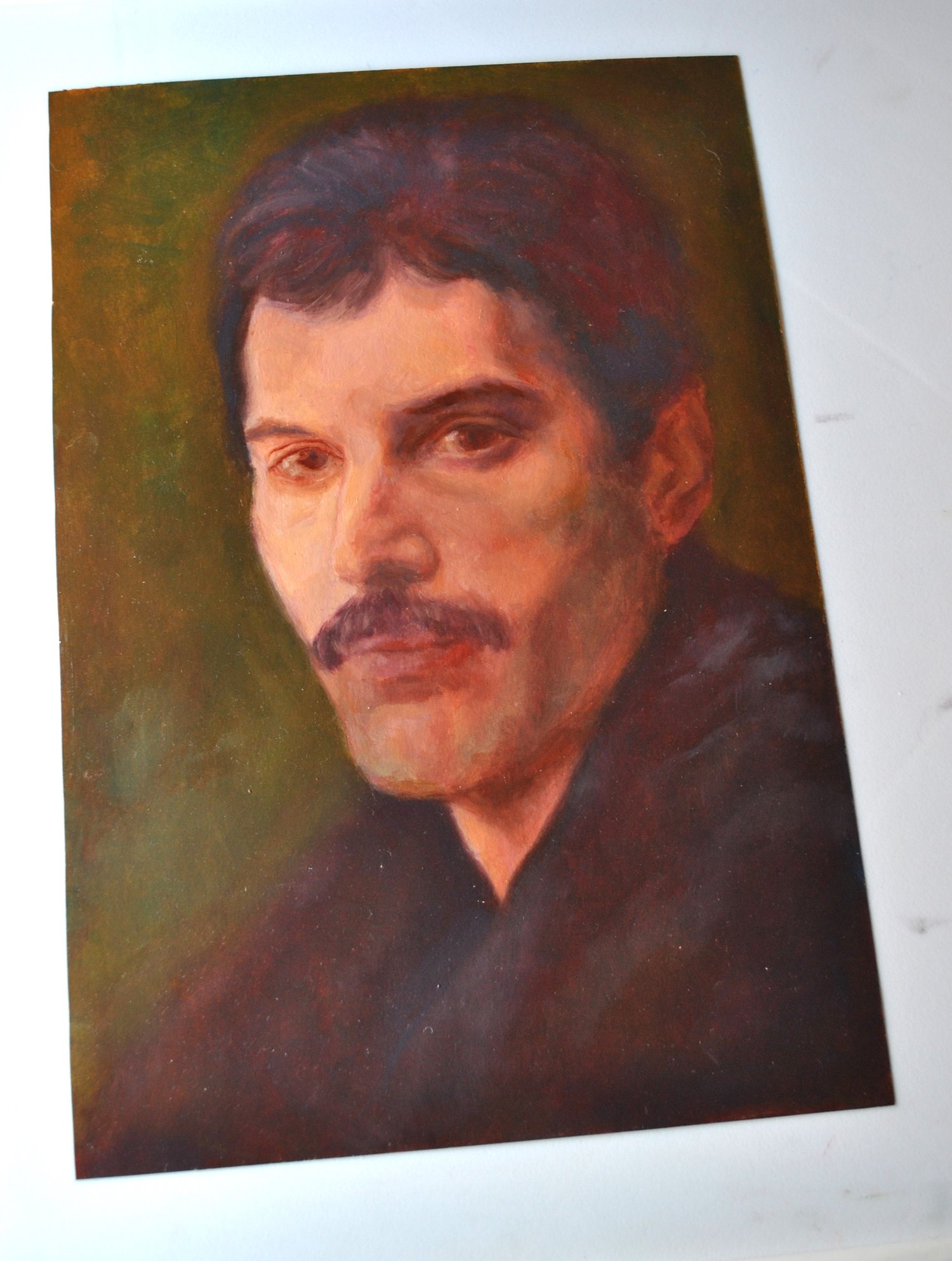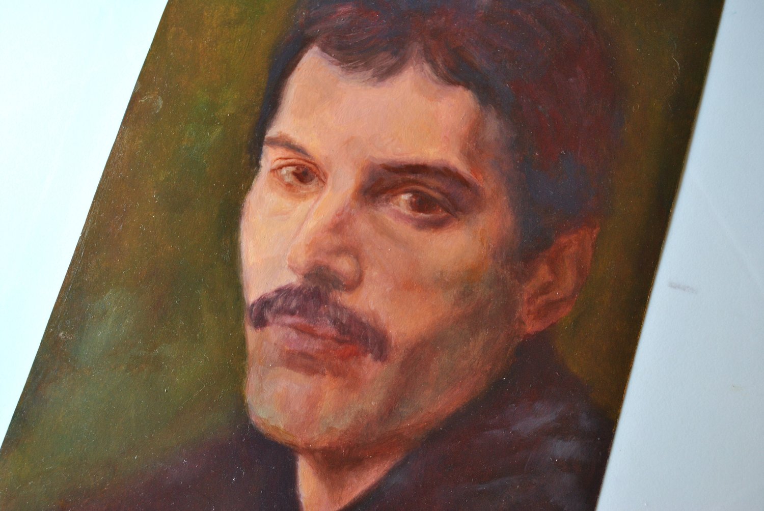 Portrait painting inspired by Freddie Mercury in the mid 1980s.