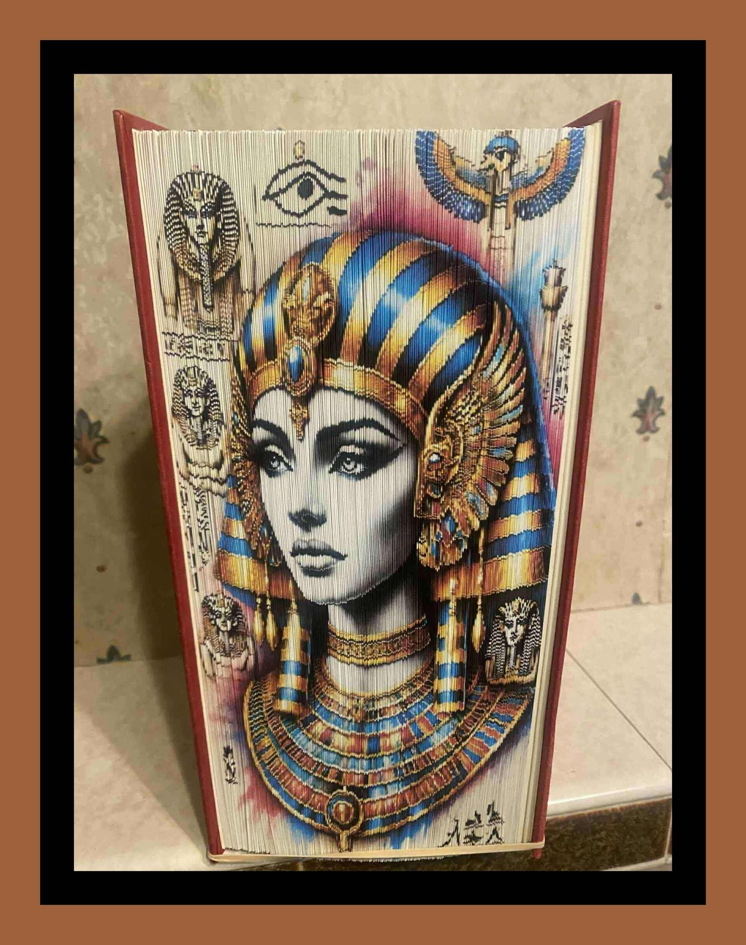 Create your own striking Cleopatra-inspired folded book sculpture with this detailed digital book folding pattern. Designed for book art enthusiasts of all skill levels, this pattern allows you to transform an ordinary hardcover book into an elegant portrait inspired by the legendary Egyptian queen.