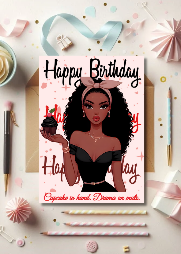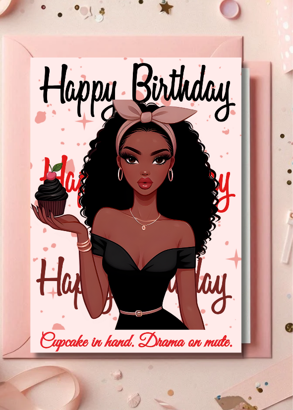 Celebrate her big day the glamorous way with Cupcake Royale — a bold, beautiful, and unapologetically fabulous printable birthday card for women. Featuring a fierce Black queen holding a decadent cupcake and serving looks, this digital birthday card is perfect for stylish sisters, besties, and boss babes who deserve a little extra sparkle on their day.